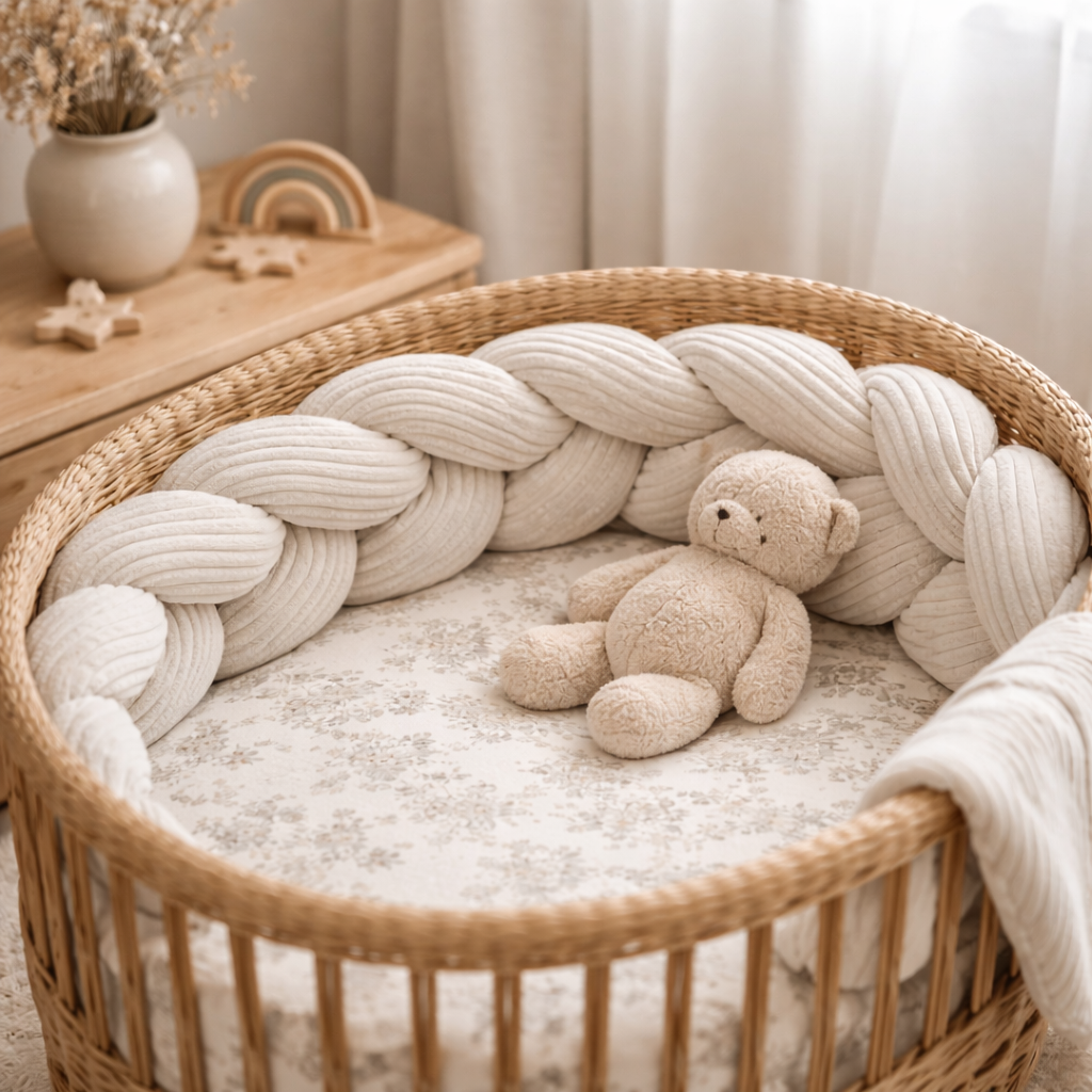 Die weiche Bettumrandung eignet sich ideal für Babybett, Beistellbett oder Laufstall und unterstützt ruhigen Schlaf – für dein Baby und für dich. Hochwertige, schadstoffgeprüfte Materialien machen die Bettschlange besonders hautfreundlich und sicher.