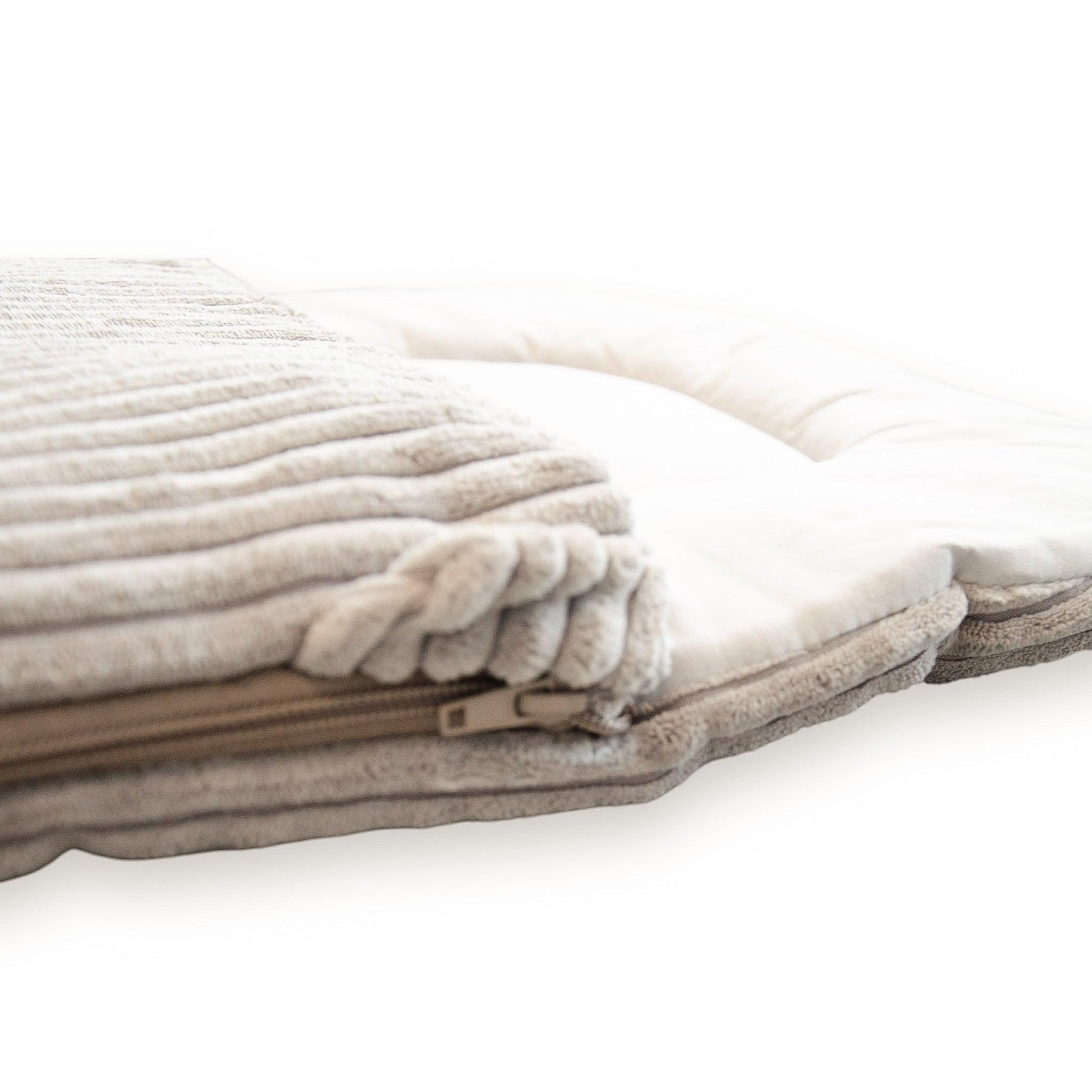 Besonders im ersten Lebensjahr ist ein Schlafsack ein treuer Begleiter. Er hält dein Baby warm, verhindert Überdecken oder Aufdecken und trägt dazu bei, dass dein Kind sicher in Rückenlage schläft. Gleichzeitig sorgt er für die richtige Temperatur, indem er Körperwärme speichert, ohne Wärmestau zu erzeugen. Dein Baby hat ausreichend Beinfreiheit zum Strampeln und fühlt sich dennoch geschützt und geborgen.