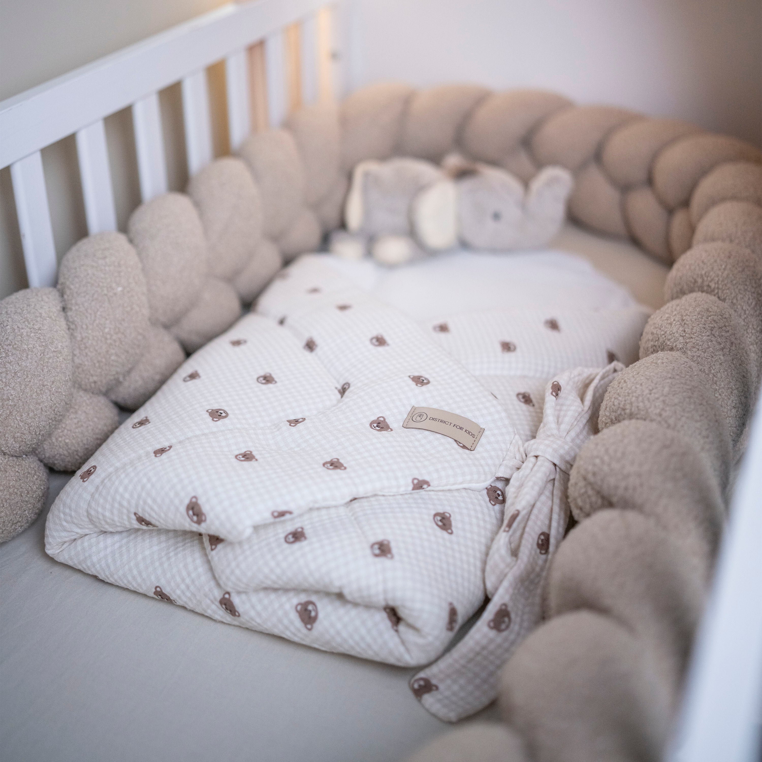 Sanfte Polsterung schützt vor harten Gitterstäben, reduziert Zugluft und schafft eine kuschelige Schlafumgebung. Flexibel einsetzbar – im Babybett, Kinderbett oder Beistellbett.