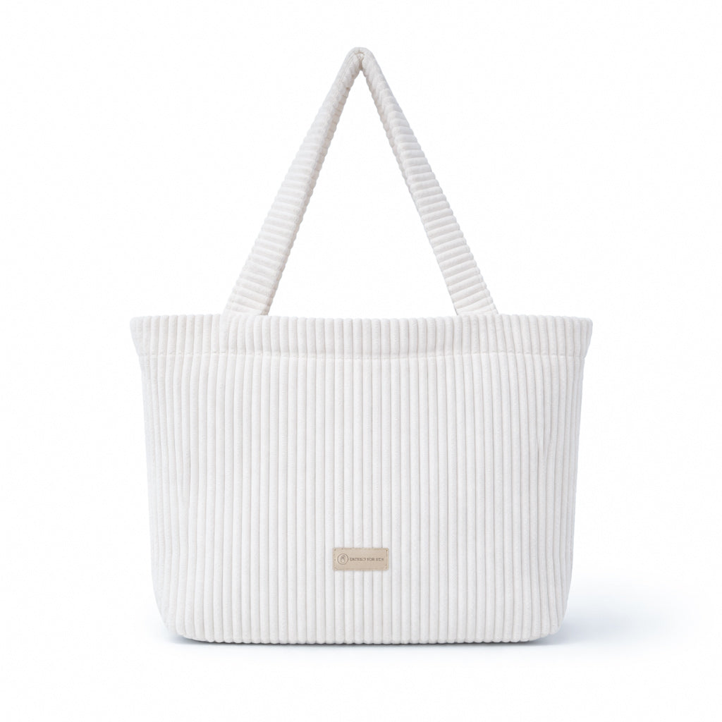 Unser Mom Shopper aus recyceltem Cordstoff in Creme ist die perfekte Begleiterin für moderne Mamas – mit viel Platz, cleveren Features und einem minimalistischen Look, der zu jedem Style passt.