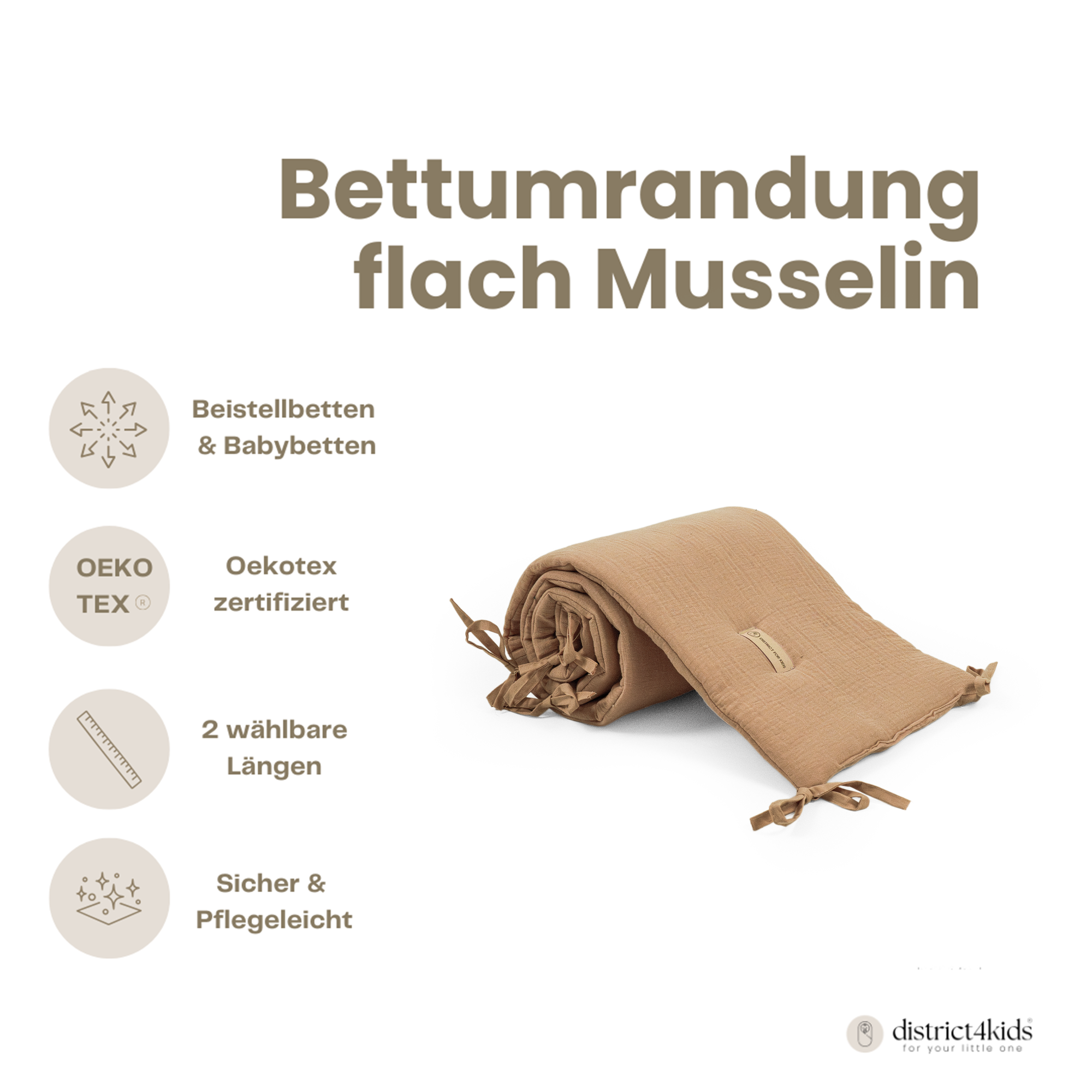 Bettumrandung Baumwolle für Baby- und Beistellbetten – Schutz, Komfort & Qualität-Bettumrandung-District for Kids-Beige-150 cm-District for Kids