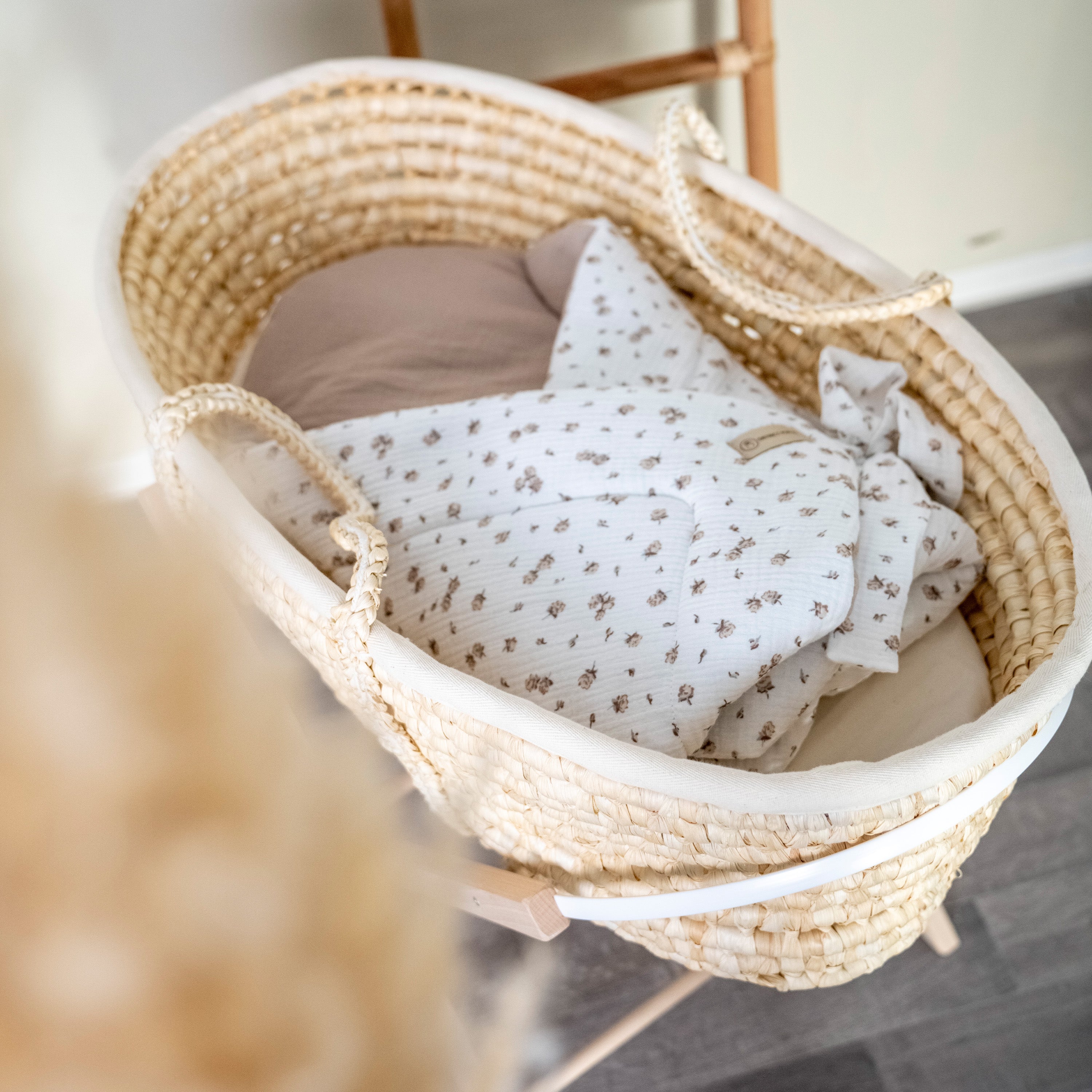 At District for Kids we offer you a large selection of many great designs that have something for every taste. Discover our variety of models made of different materials and various color and pattern variants. Here you can choose from classic styles, boho, fur variants, minimalist waffle pique or playful blankets with teddy ears or bows. Some of our models are even water-repellent or can be used on both sides. All of our baby wraps are made exclusively from breathable, anti-allergic, non-toxic materials that are gentle on baby's delicate skin. You have the choice of cotton, muslin, corduroy and velvet. Our color palette ranges from beige, nude, grey, white and ecru to mint, rose, pink and taupe.