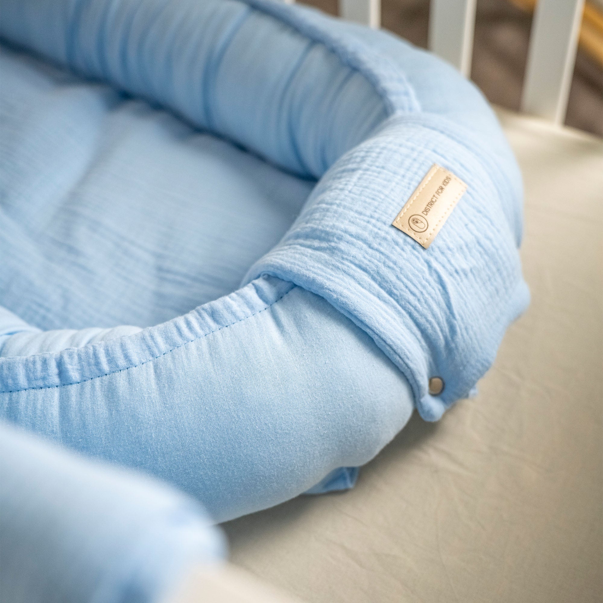 Das Babynestchen aus Musselin von District4Kids ist der ideale Begleiter für die ersten Monate deines Babys. Vom ersten Tag an schenkt es Sicherheit und Geborgenheit – besonders Neugeborene lieben die enge, geschützte Umgebung. Das Nestchen vermittelt genau dieses vertraute Gefühl und unterstützt so einen ruhigen und erholsamen Schlaf.