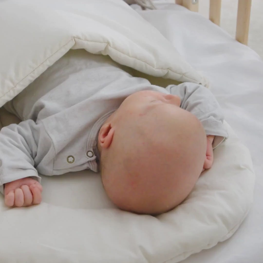 Dank der beidseitigen Reißverschlüsse kannst du dein Baby sanft hineinlegen oder herausnehmen, ohne es aufzuwecken. Die obere Decke ist vollständig abnehmbar und kann bei Bedarf durch eine separat erhältliche Decke in der passenden Farbe ausgetauscht werden – für noch mehr Flexibilität.