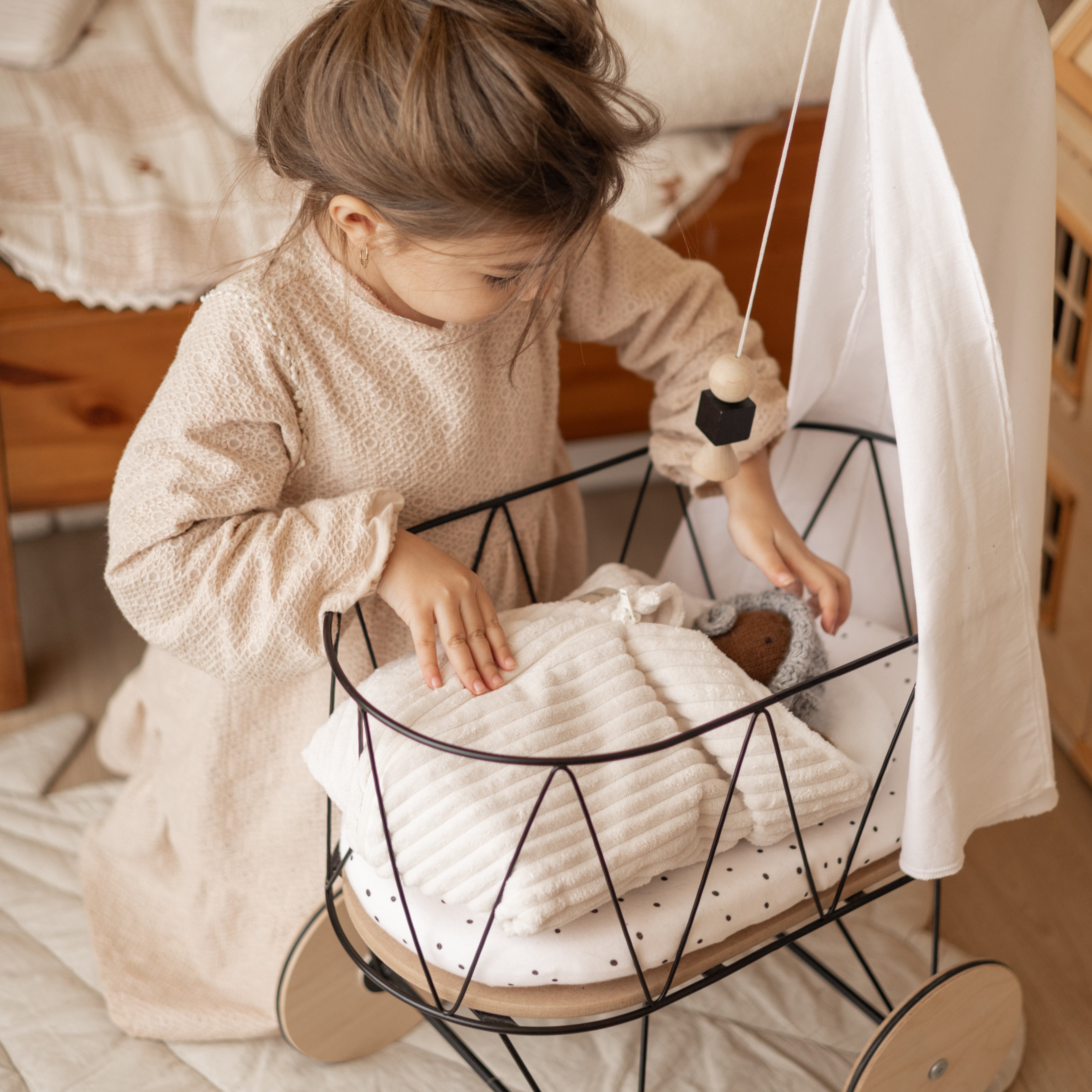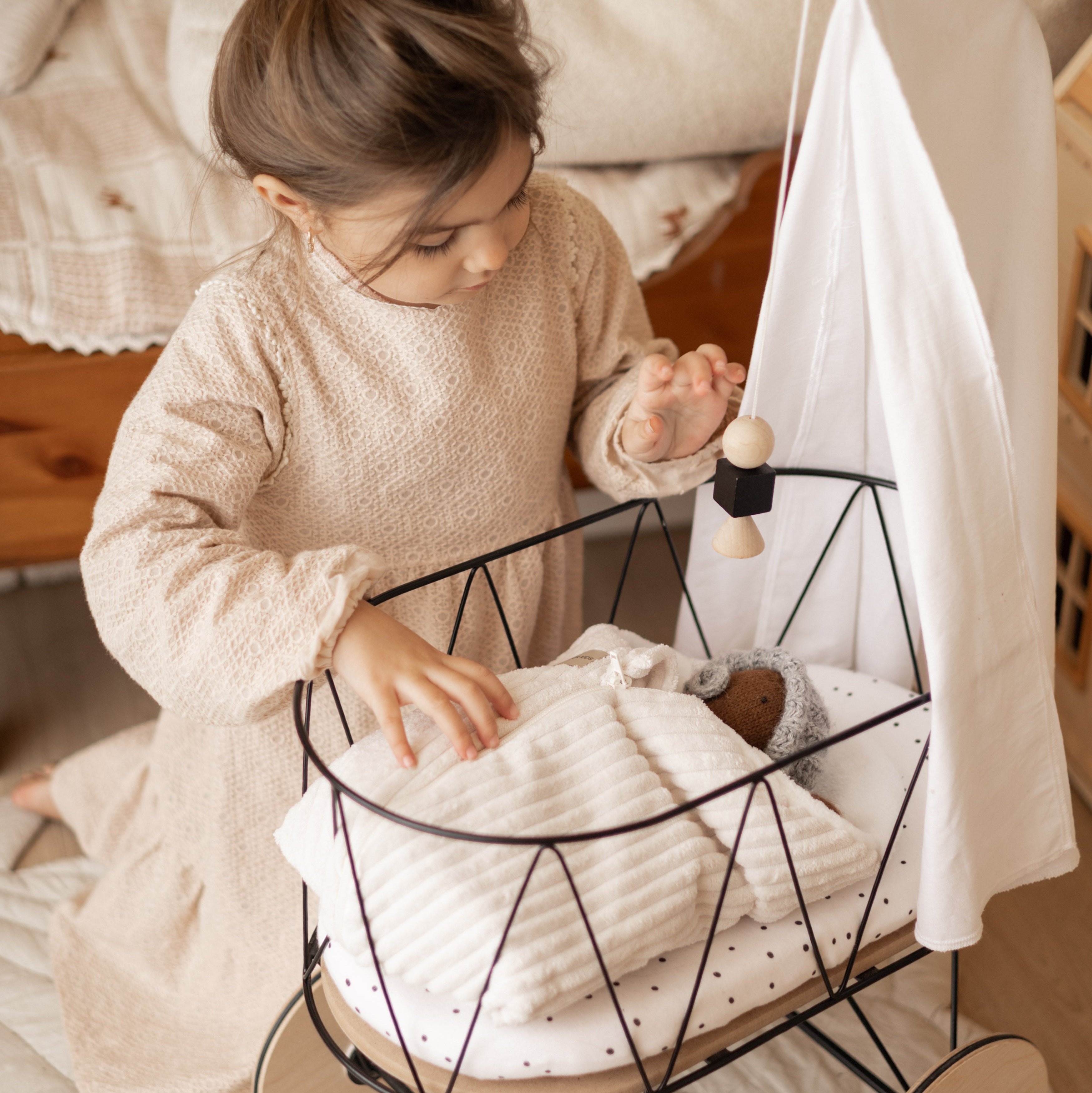 Mit dem Mini-Pucksack können sie ihr Puppenbaby sicher einwickeln, beruhigen und „ins Bettchen bringen“ – ein wunderschönes Ritual, das Nähe, Empathie und Selbstvertrauen stärkt.