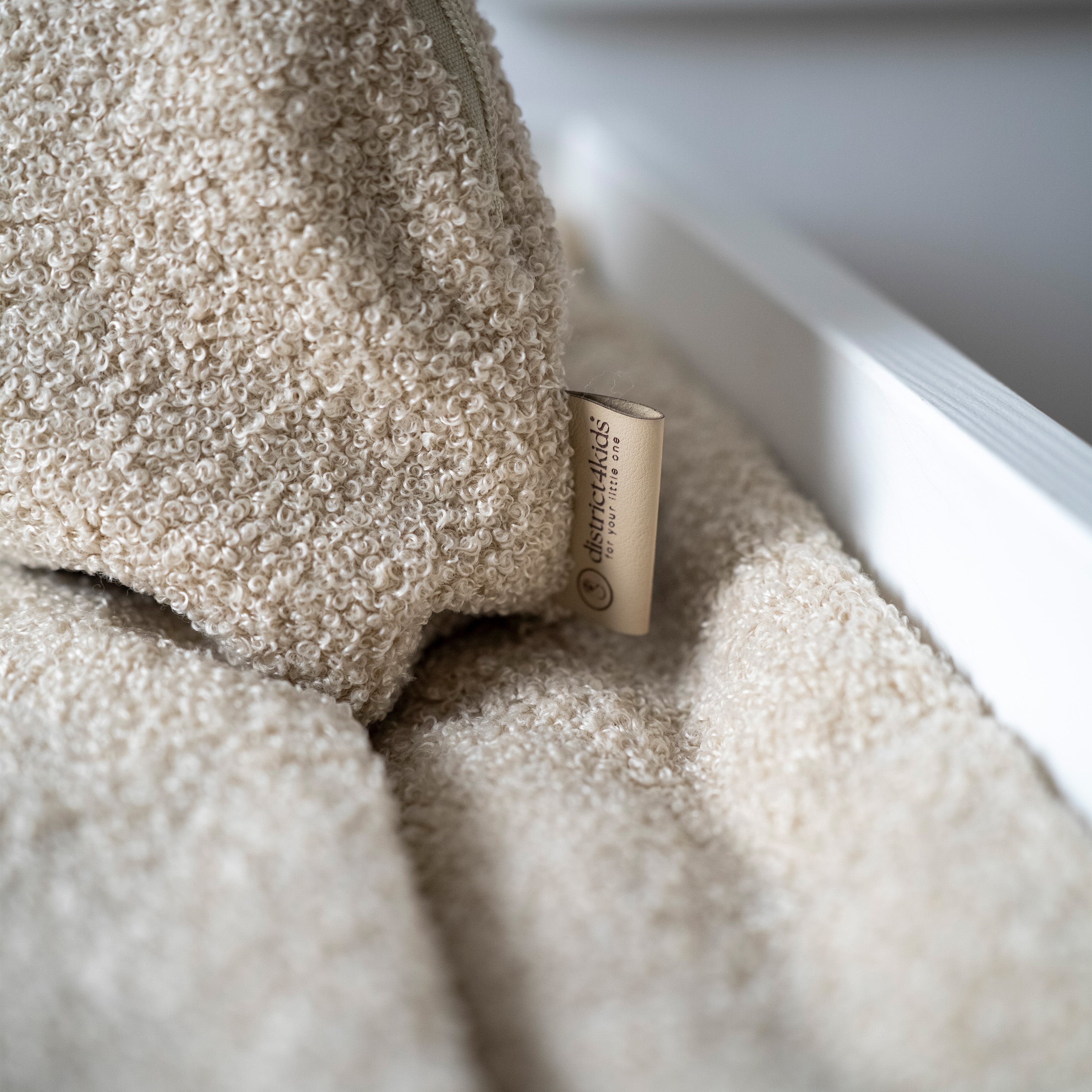 - Weicher Teddystoff Bouclé: Elegant, robust und angenehm in der Hand.