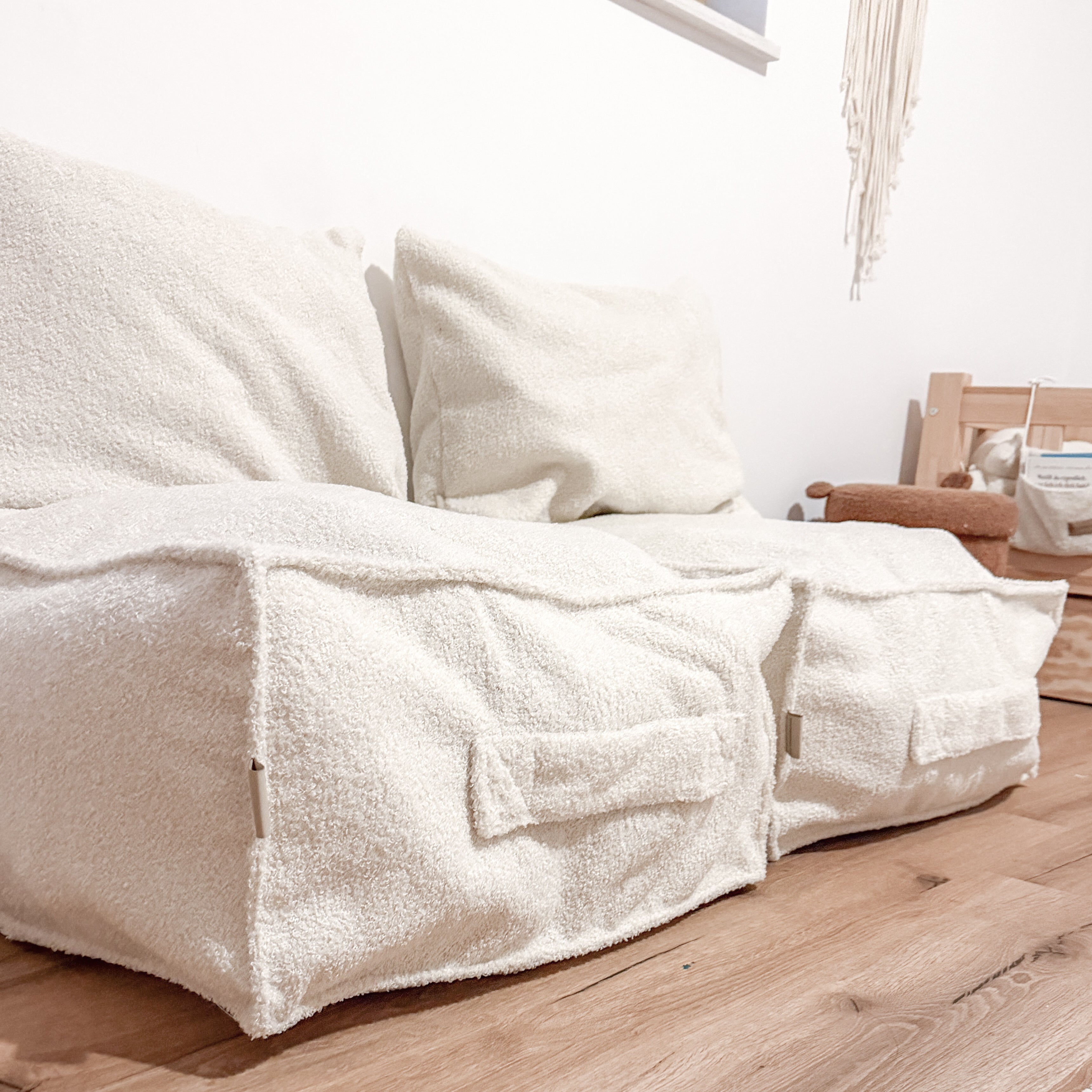 🛋️ Gemütlicher Sitzkomfort: Weiches Bouclé-Material passt sich optimal an & lädt zum Spielen, Lesen oder Entspannen ein.