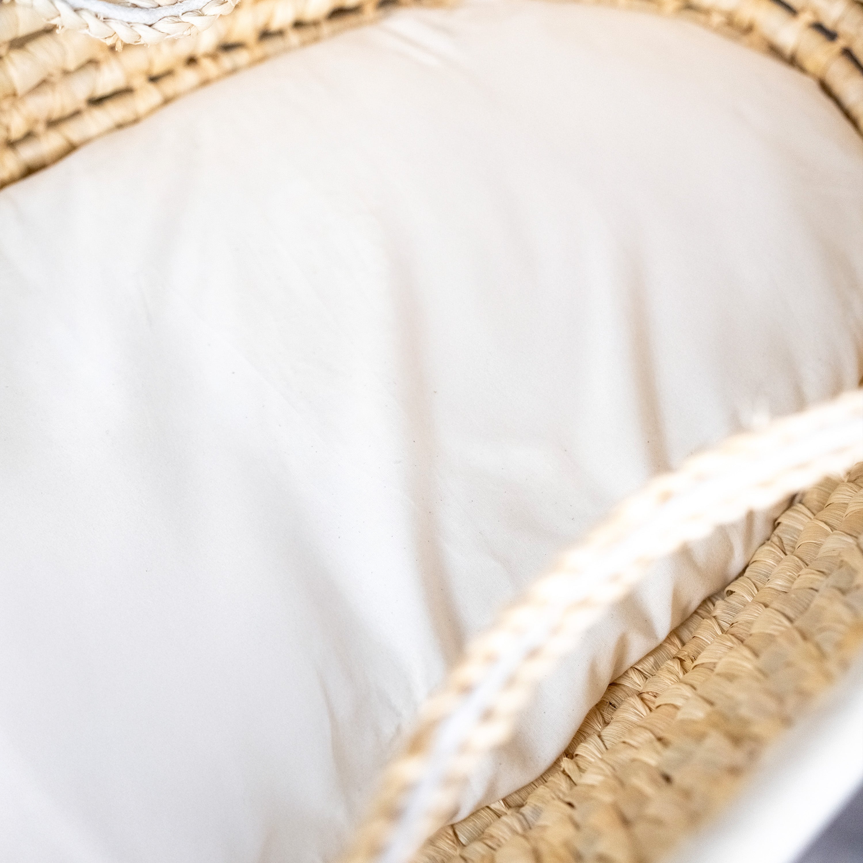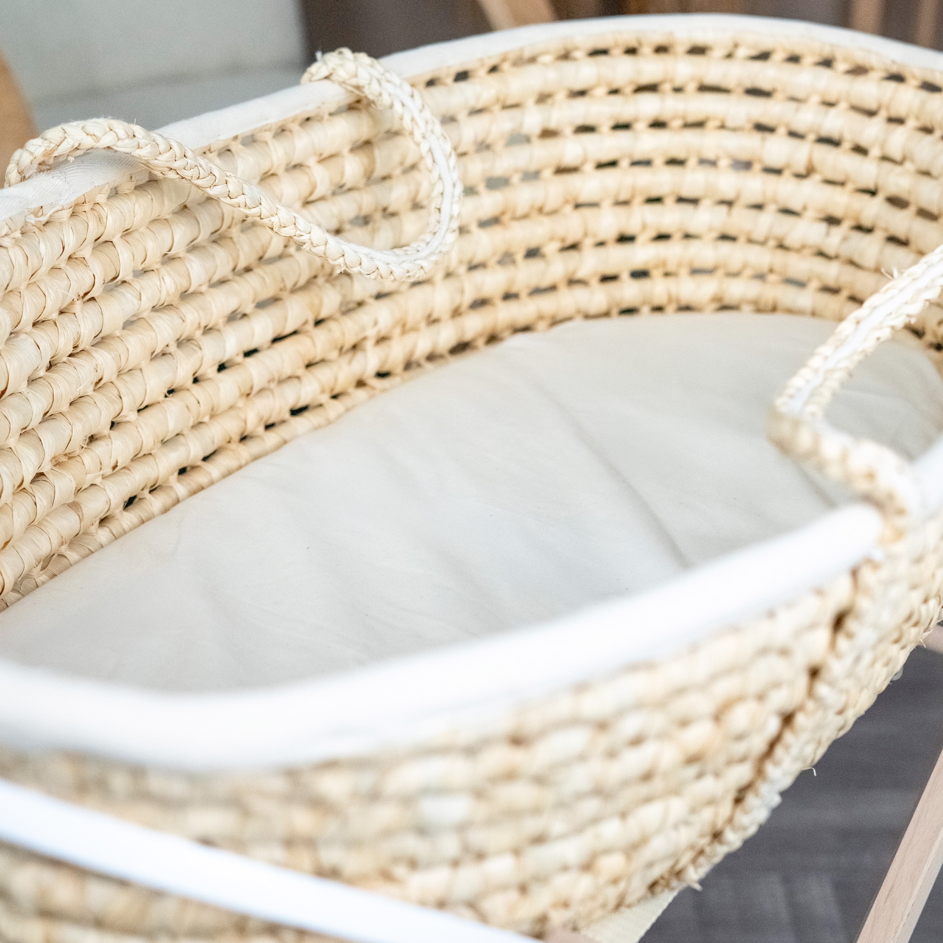 Das Spannbetttuch passt mit 40 × 80 cm perfekt in Moseskörbe, Babywannen & Wiegen. Dank elastischem Gummizug sitzt es sicher, verrutscht nicht und bleibt auch nach vielen Wäschen formstabil. Maschinenwaschbar bei 30 °C und schnell luftgetrocknet – ideal für den Alltag mit Baby.