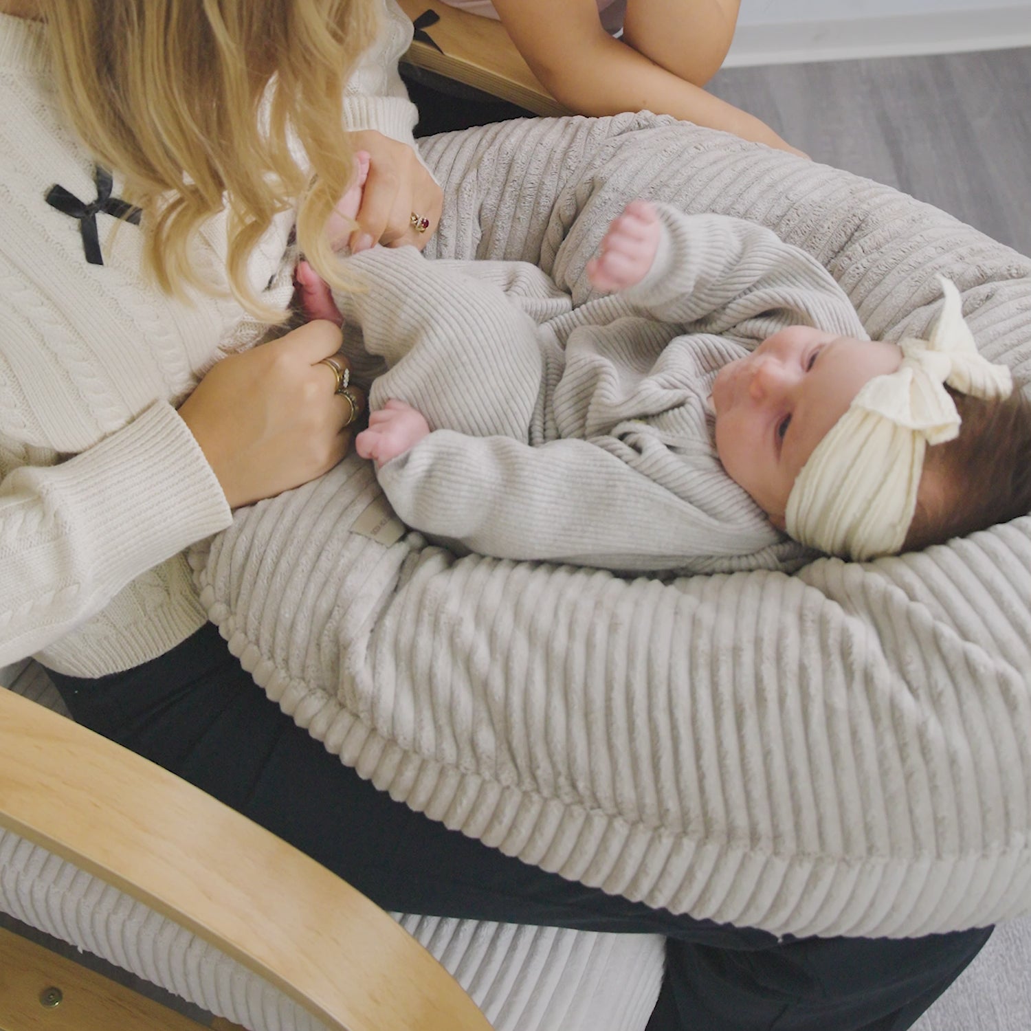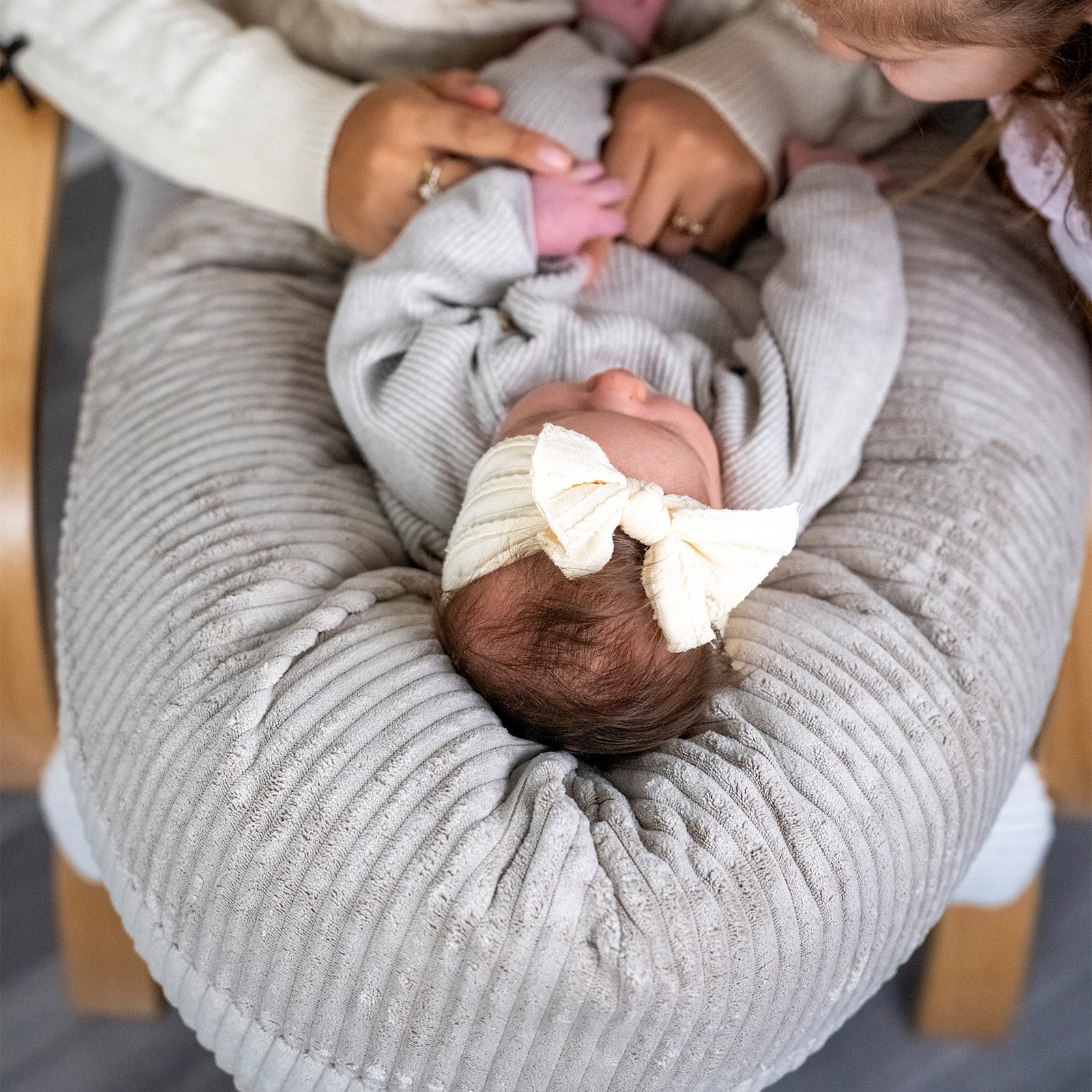 Der edle Cord-Bezug sorgt für eine moderne, stilvolle Optik und fühlt sich angenehm weich auf der Haut an. Ergonomisch geformt, geräuschlos und stabil – dieses Kissen ist ein echtes Wohlfühl-Accessoire für Mama & Baby.