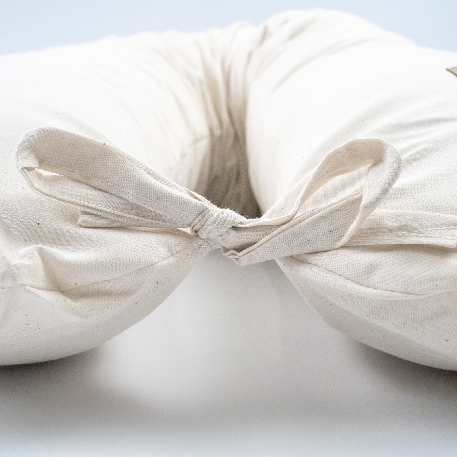 Die Halbmond-Form passt sich optimal an Körper und Haltung an, während der kuschelig-weiche Baumwollstoff besonders hautfreundlich, atmungsaktiv und angenehm ist. Auch für dein Baby ist das Kissen vielseitig nutzbar: als Stütze beim Üben der Rückenlage oder beim Sitzen.