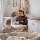 Die Halbmond-Form passt sich optimal an Körper & Haltung an, während das kuschelig-weiche Cord-Material hautfreundlich und gleichzeitig stilvoll ist. Auch für dein Baby ist das Kissen vielseitig nutzbar: als Stütze beim Üben der Rückenlage oder beim Sitzen.